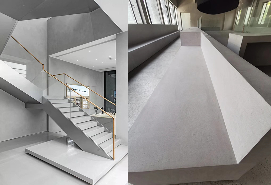 以在任何基面上施工,可以創造出和清水混凝土一樣素面朝天、剛勁和諧自然的高級藝術效果,可以提高工期效率和節省成本。